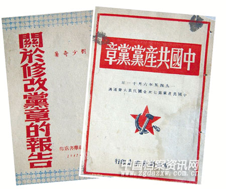 ▲劉少奇所作《關于修改黨章的報告》
