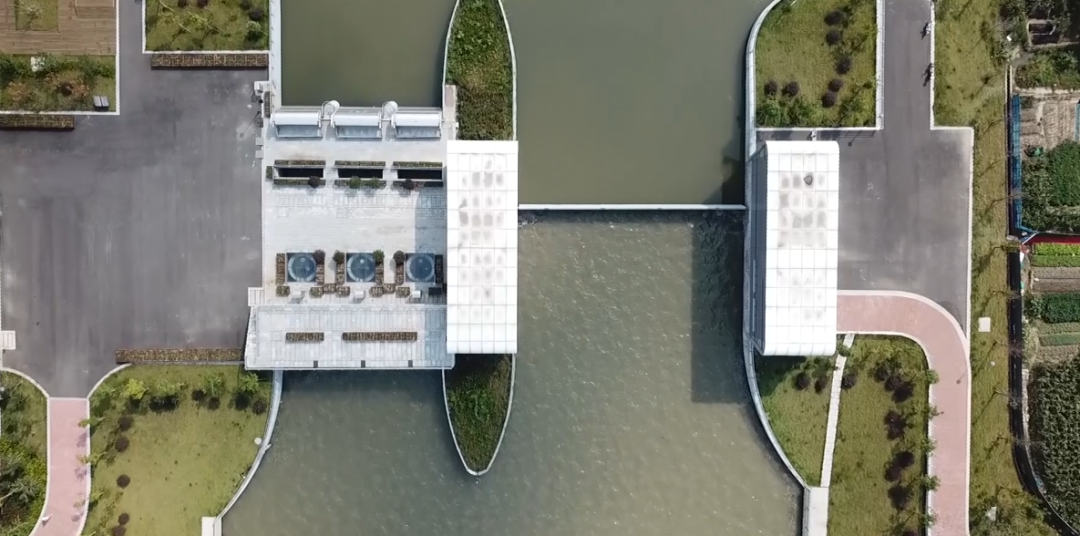 工程規(guī)劃與區(qū)域發(fā)展規(guī)劃高度融合,打通了原洞船河與姚江之間的“斷頭路”,提高了鄞西平原城區(qū)的防洪排澇能力。項目建筑設計與周邊環(huán)境完美結(jié)合。泵站及閘門上部采用無廠房設計,水泵機組采用立式潛水機組,閘門采用底軸驅(qū)動翻板門,泵站上下游視野通透,觀感效果佳。管理房屋頂設計為綠化屋頂,管理房隱藏于周邊綠化之中,滿足姚江岸高標準景觀要求。生態(tài)河道設計符合人文和諧之美。護岸采用干壘生態(tài)擋塊,中間預留魚槽設計,充分體現(xiàn)了生態(tài)環(huán)保設計理念。